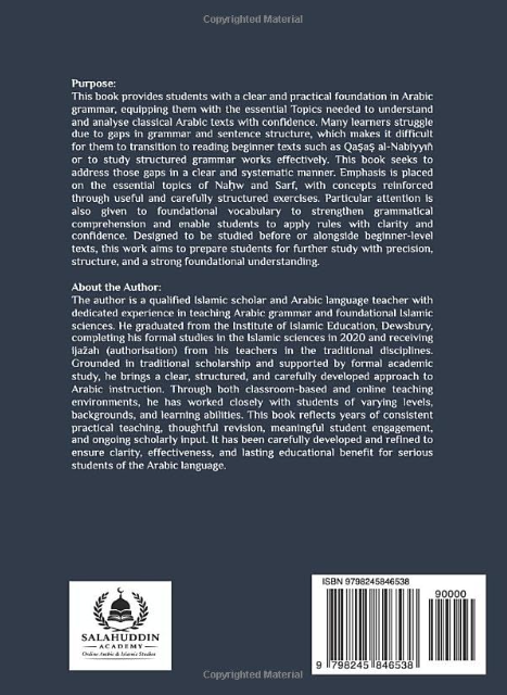 This book presents Arabic grammar in a simple, lesson-based format, making complex concepts easy to understand and apply. Each lesson builds gradually, helping students gain confidence without feeling overwhelmed.